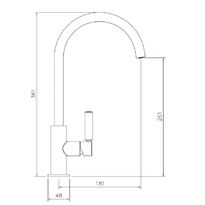 - Tap Dimensions: Overall Height – 261mm; Spout Height – 361mm; Spout Reach – 181mm; Base/Handle Width – 50mm
