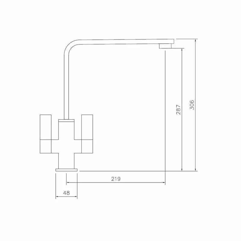 - Tap Dimensions: Overall Height – 306mm; Spout Height – 287mm; Spout Reach – 219mm; Base/Handle Width – 48mm