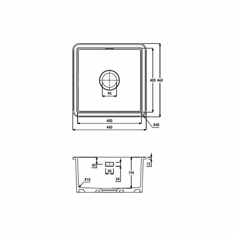 - Main Bowl Dimensions: W 400 x D 400 x H 195mm