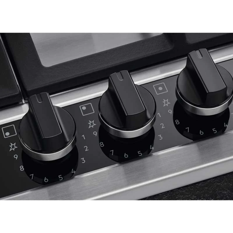 This built-in gas hob from AEG is finished in stainless steel. This gas hob is Supplied with 4 standard burners and sturdy cast iron pan supports that can withstand heavy pots and pans. This gas hob is fitted with burners which can provide 9 different heating options, helping you apply heat flawlessly. The flames point upwards and direct the temperature to your pans for perfect cooking. The rotary dials allow you to control the gas hob with ease.