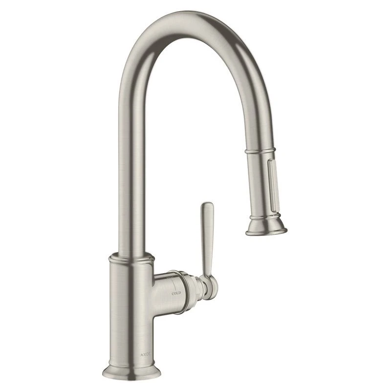 AXOR Montreux Single Lever Kitchen Mixer Tap 180 With Pull Out Spray – Stainless Steel – Details