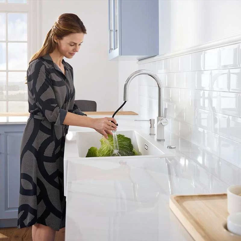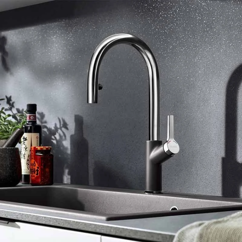 The Blanco CARENA-S Vario Pull-Out Spray Silgranit-Look Dual Finish Kitchen Tap features a pull-out two-spray hose, and high arched spout for easy filling of pots and vases. The extendable pull-out spray hose makes cleaning around your sink easier, and the ergonomic single leaver control with ceramic disc technology ensures you with no-drip longevity.
