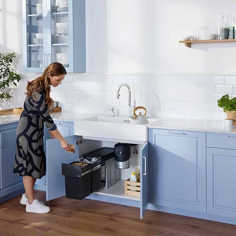 The addition of a Blanco food waste disposer to your Blanco sink creates a time saving kitchen hub that simply makes life easier. The disposal unit has a 3 stage grinding process for fine grinding results to easily flush away the food waste. It is easy to install and has an ultra quiet operation for your peace of mind. To run the disposer, simply turn on the cold tap, switch on the disposal unit and feed the food into the disposer. The waste will be grounded into fine particles and flushed away in your regular waste system.