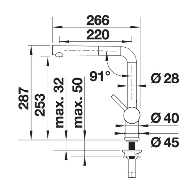 - Ø 35 mm tap hole required