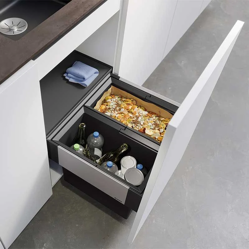 The Blanco SELECT II 50/2 Waste Sorter for 500mm Base Cabinet boasts a modern, harmonious and functional design, with high quality pull-out system.