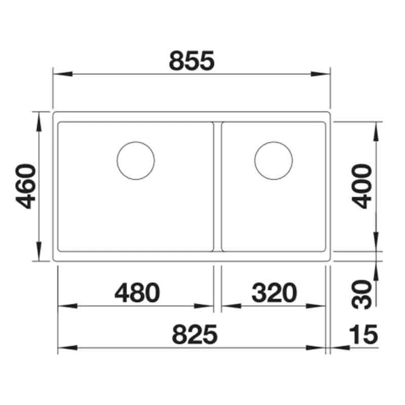 Blanco SUBLINE 480/320-U LH 2 Bowl Undermount Silgranit Kitchen Sink with Manual InFino Waste – Tartufo – 523591