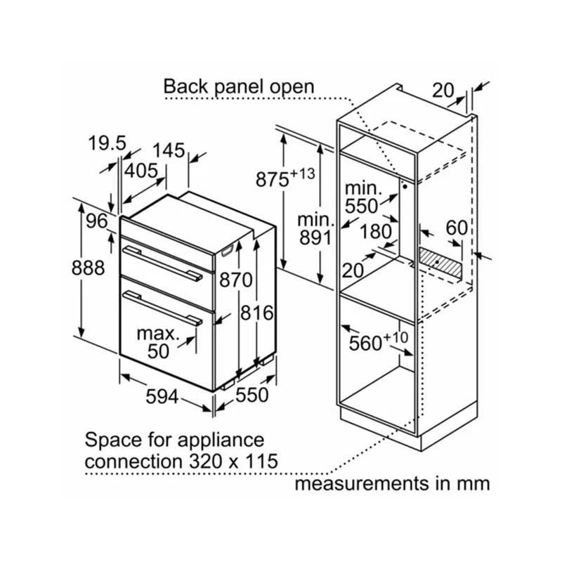 Finish your kitchen with the Bosch Series 4 double electric oven. It is designed for fully built-in installation in the kitchen counter. It has an elegant black exterior, perfect to be installed in any kitchen style.
