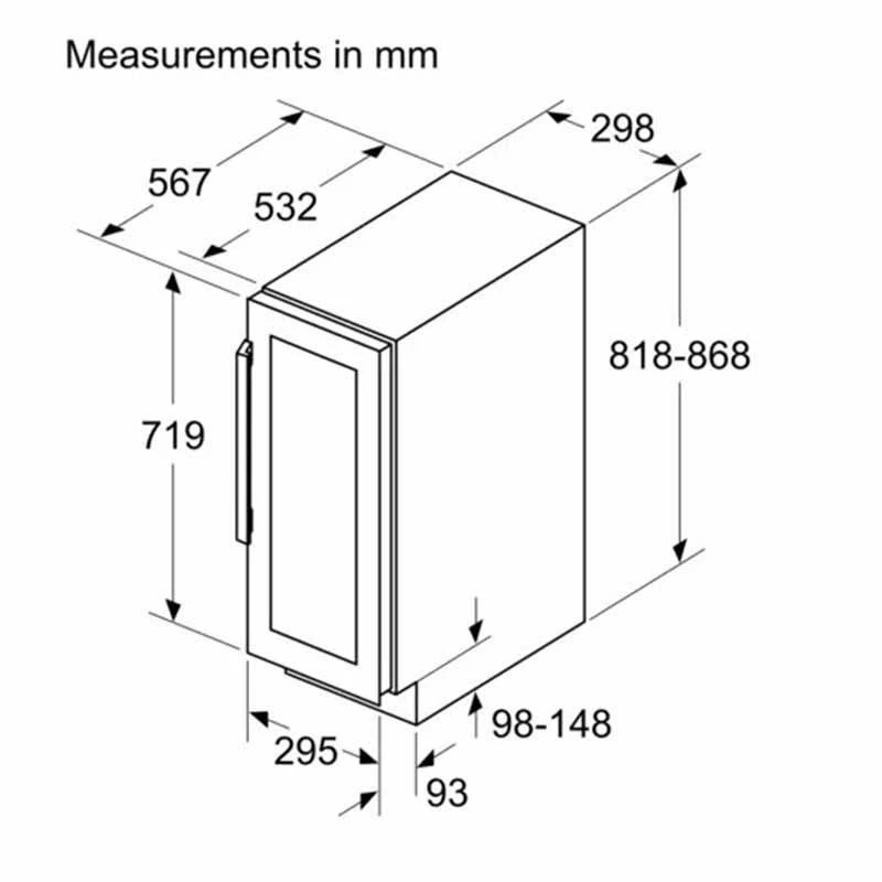 - Dimensions: H 818 x W 298 x D 567mm