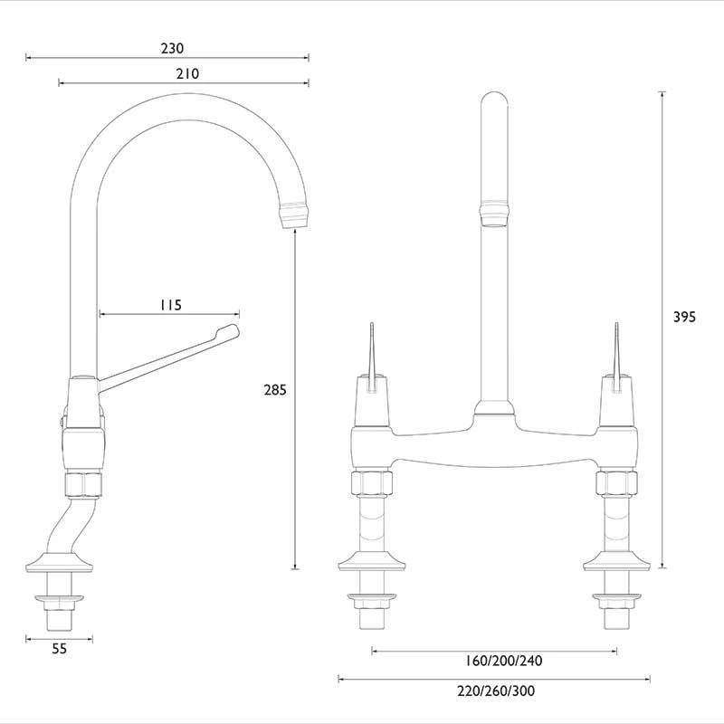 The Bristan Value Lever Bridge Deck Kitchen Mixer Tap has a strong solid brass body with a high quality feel that is durable and built to last. The tap is finished with a stunning chrome finish that will compliment any kitchen. Solid brass is known for its durability and long life in wet corrosive environments.