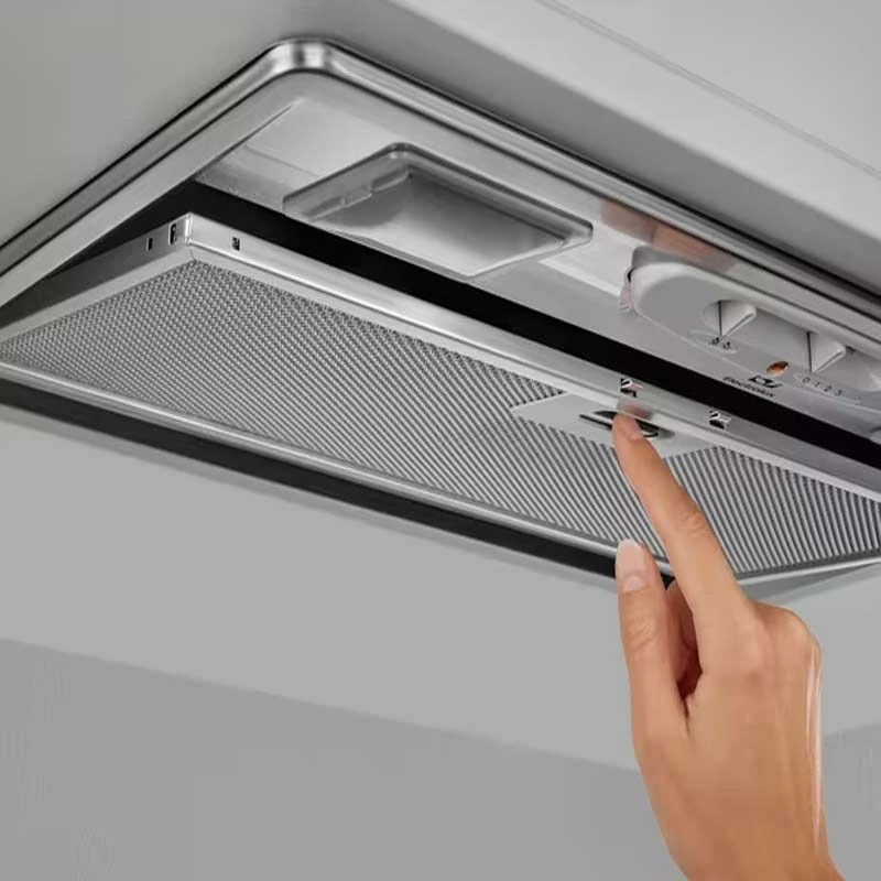 - Washable aluminium grease filters: The metal filter attracts the grease from cooking vapours, reducing odours, purifying the air and optimising performance. The filter is dishwasher safe and never needs replacing.