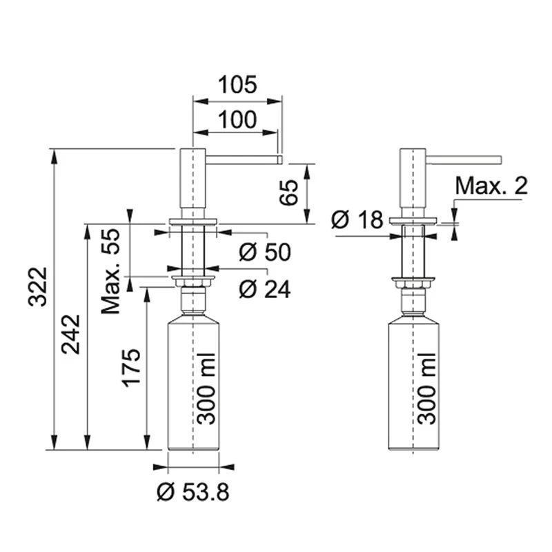 - Dispenser tube capacity: 300ml