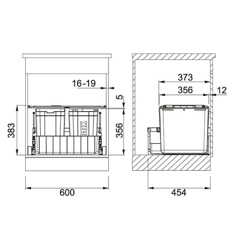 - Bin configuration: 2 x 10L & 1 x 22L