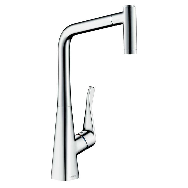 hansgrohe Metris M71 EcoSmart Single Lever Kitchen Mixer Tap 320 With Pull-Out Spray 2 Spray Modes – Chrome – 14780000