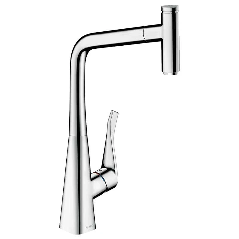 hansgrohe Metris Select M71 EcoSmart Single Lever Kitchen Mixer Tap 320 With Pull-Out Spout & Sbox Single Spray Mode – Chrome – 73807000