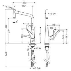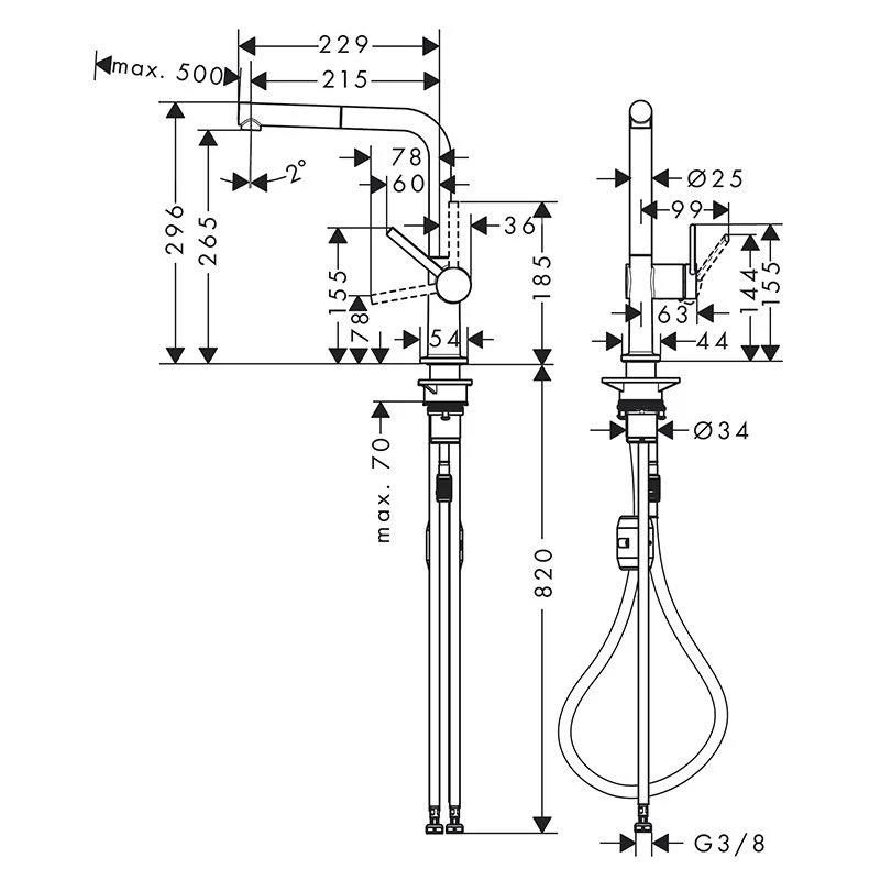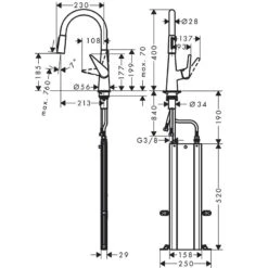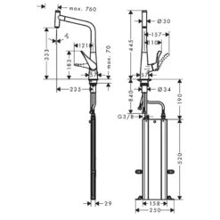 hansgrohe Talis M54 Single Lever Kitchen Mixer 270, Pull-Out Spout, 1jet – Stainless Steel – 72808800 Details