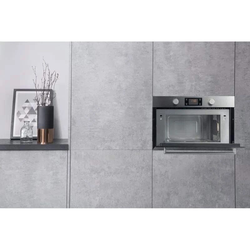 With a large 31 litre capacity, the Hotpoint MD 344 IX H built-in microwave and grill is designed for modern kitchen. It features Hotpoint’s special Multiwave Technology that ensures every part of your food is cooked entirely, meaning no hot or cold spots & no need to stir throughout. A sleek design complemented by an easy-to-use rotary control and interface makes the Hotpoint Built-In Microwave a pleasure to cook with and an attractive addition to which integrates easily into every decor.