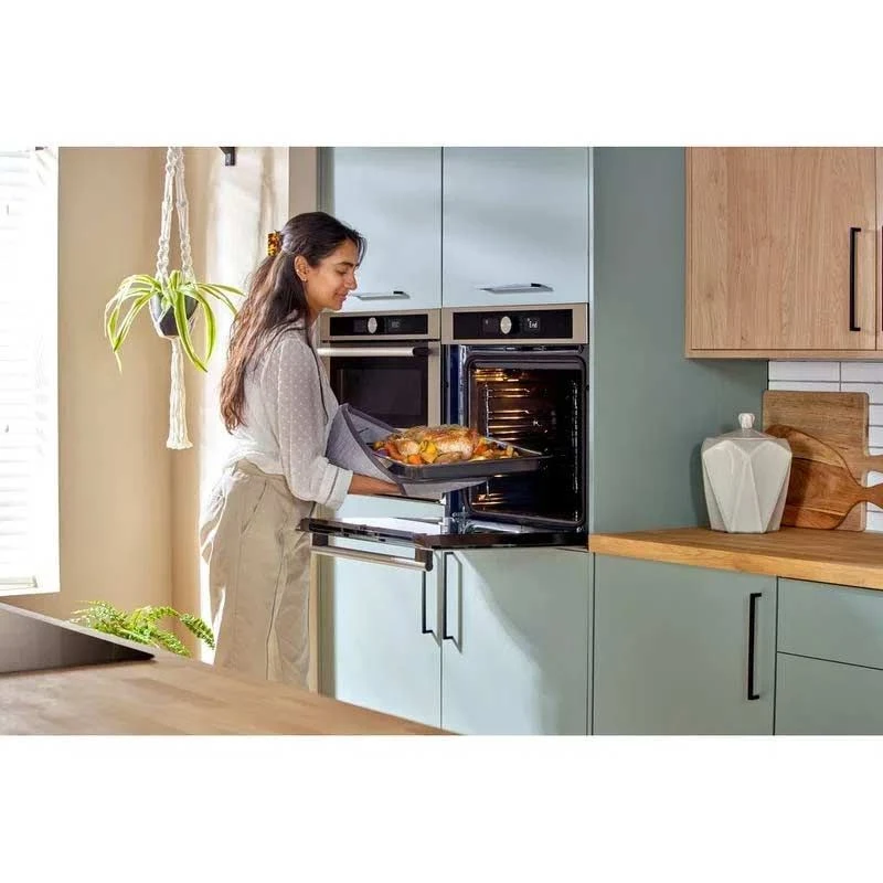 With its impressive cooking capacity, superbly uniformed cooking, and automatic cleaning functions, the Hotpoint Built-In 71L Oven in classic stainless steel adds more flavour to your kitchen. The new style of convection system, multiflow technology, creates an all-enveloping heat flow that pushes heat into every inch of the oven cavity for consistently even, delicious dishes every time – regardless of which shelf you’re using, perfect for perfectly risen cakes and breads, as well as reducing cold spots in your favourite dishes.