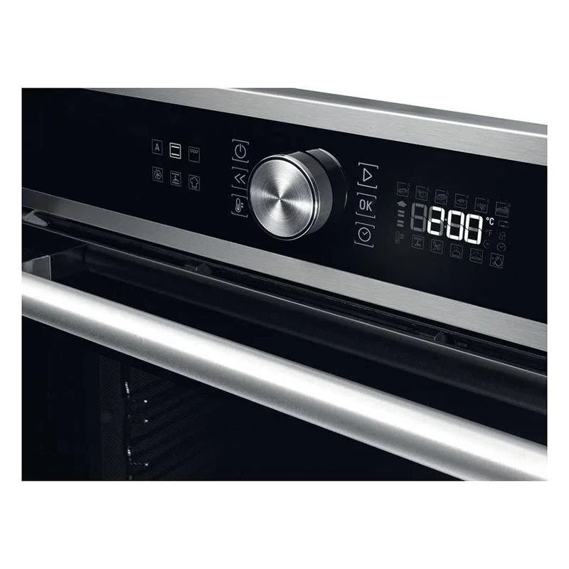 Easily operated through the rotary knob and touch buttons for full control, With eight conventional and six automated options, including grill, defrost, pizza, and bread, the Hotpoint Built-In Oven is simple to use and gives you the right temperature for cooking your favourite ingredients and meals. This oven features the innovative Hydro Clean Technology, a quick 35-minute cycle that uses steam to remove fat and food residue. After the cycle is over, simply wipe with a moist cloth to bring back the like-new appearance. Complementing the HydroClean , the Tilting Grill effortlessly unhooks so you have easy access to clean the oven roof before sliding back into position. The exterior of the oven is coated with an anti-fingerprint coating for a durable finish that keeps the surface shining and brilliant. Designed for households that love good food without hassle or complication, the Hotpoint Oven brings high capacity with an A+ energy rating and puts power at your fingertips for incredibly tasty eating and easy entertaining.