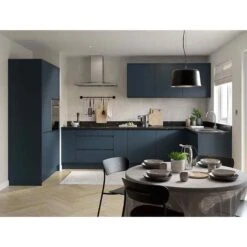 The Kitchen Kit J-Pull 600mm 3 Drawer Base Cabinet features three drawers which are tested to a 25 kg load capacity. As well as providing ample storage, they also feature a soft-close mechanism. The four adjustable legs help you achieve maximum stability on your kitchen floor, while a 49mm service void gives you plenty of space for concealing pipes or wiring. This product also comes with a 6 year manufacturers guarantee for your peace of mind.