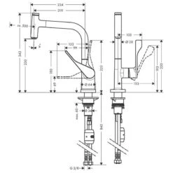 AXOR Montreux Single Lever Kitchen Mixer Tap 180 With Pull Out Spray – Stainless Steel – 16581800