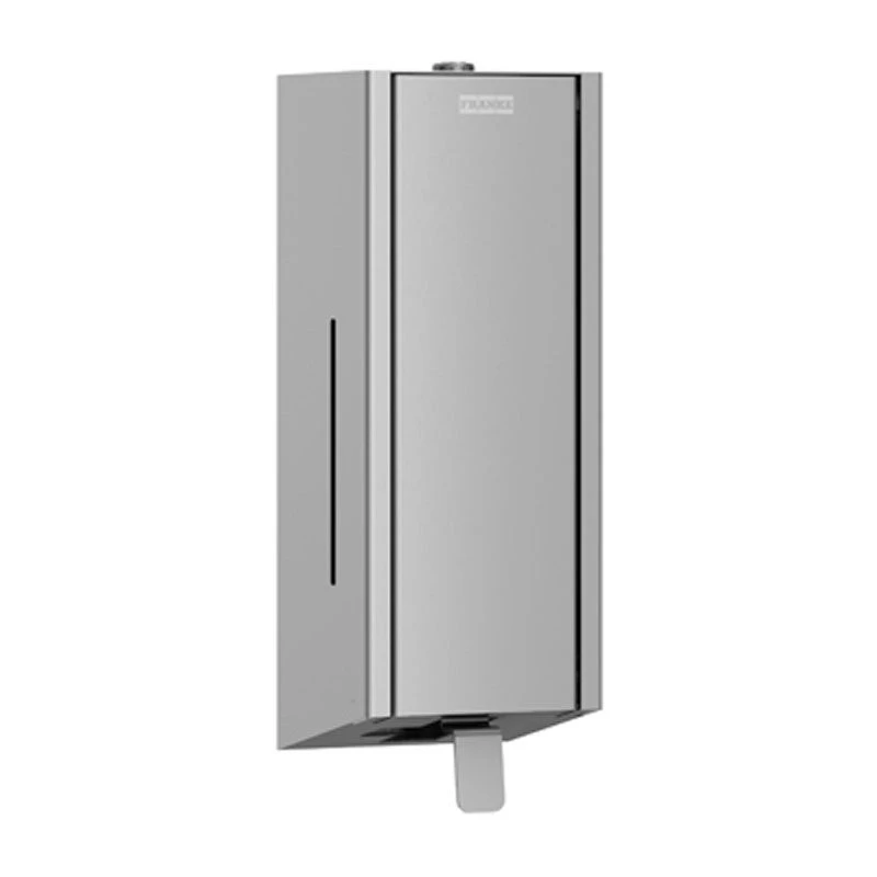 Exos Soap dispenser for wall mounting, stainless steel with satin finish, front and casing with InoxPlus surface refinement for the reduction of finger marks and better cleaning characteristics (easy to clean). KWC DVS Exos is the ultimate in high design with its clear cut design and use of interchangeable fronts in stainless steel or glass – a different room ambiance can be created.