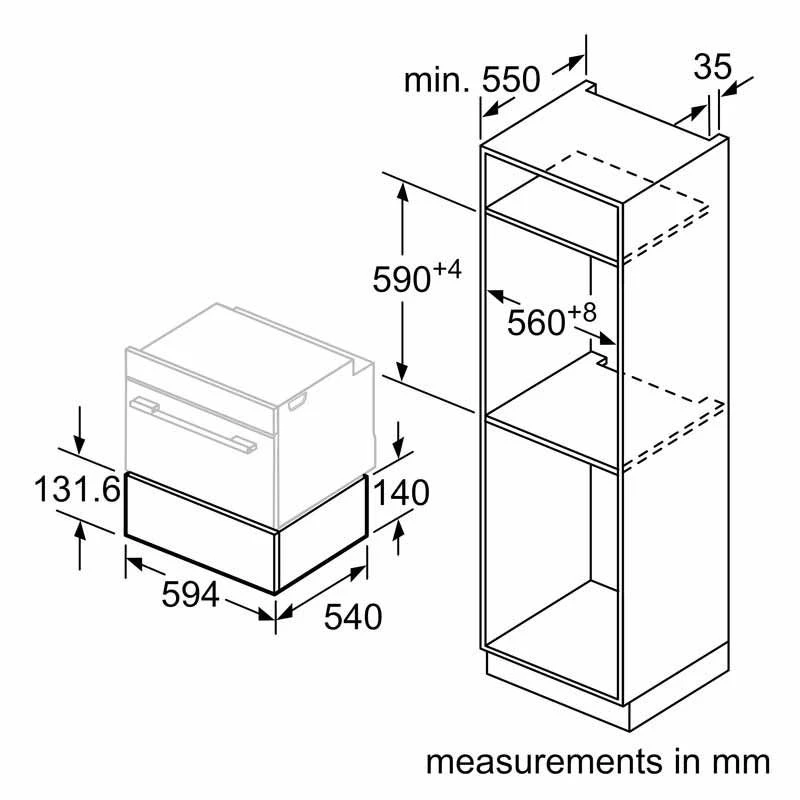 - Dimensions: H 140 x W 594 x D 540mm