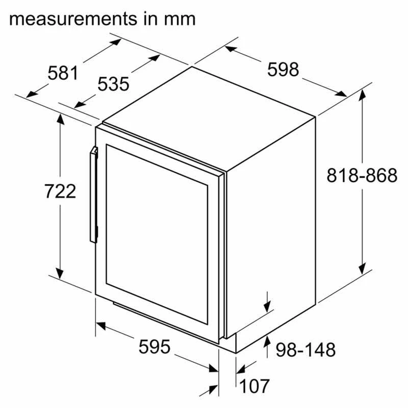 - Dimensions: H 818 x W 598 x D 581mm