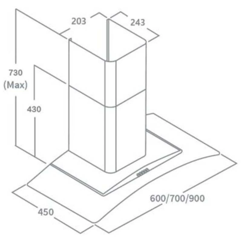 Prima 60cm Stainless Steel Curved Glass Chimney Hood – PRCGH008 Details