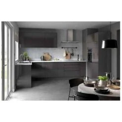 Kitchen Kit J-Pull 600mm Base Oven Cabinet – Super Gloss – Graphite – Flatpacked – FKKJ0405