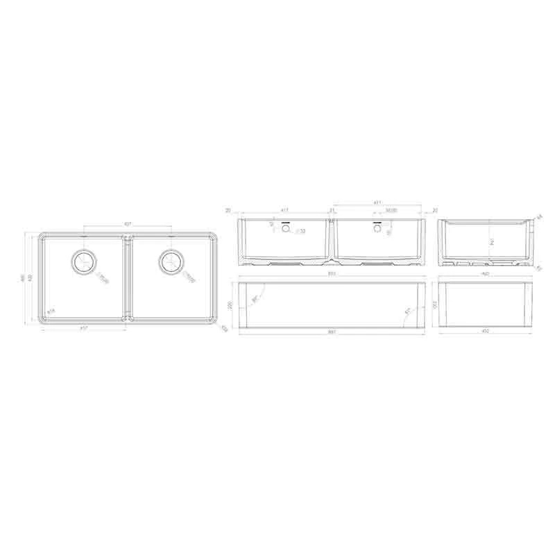 Rangemaster Farmhouse Belfast Ceramic 2 Bowl Sink 895x460mm – White – CFBL900WH/