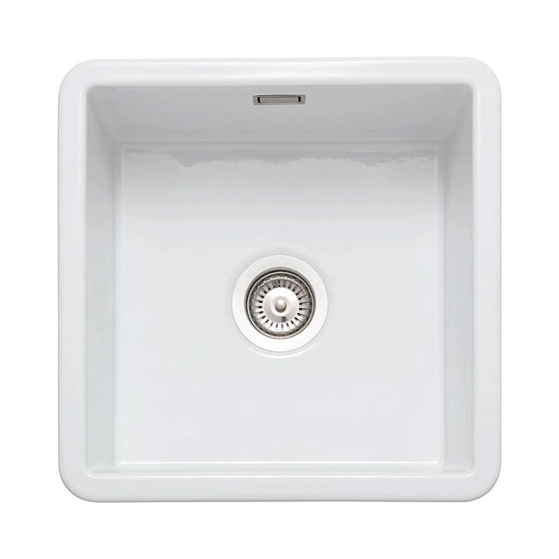 Rangemaster Rustique 462×462 1 Bowl Fire Clay Ceramic Inset or Undermount Kitchen Sink (White) CRUB4040WH/ – Details